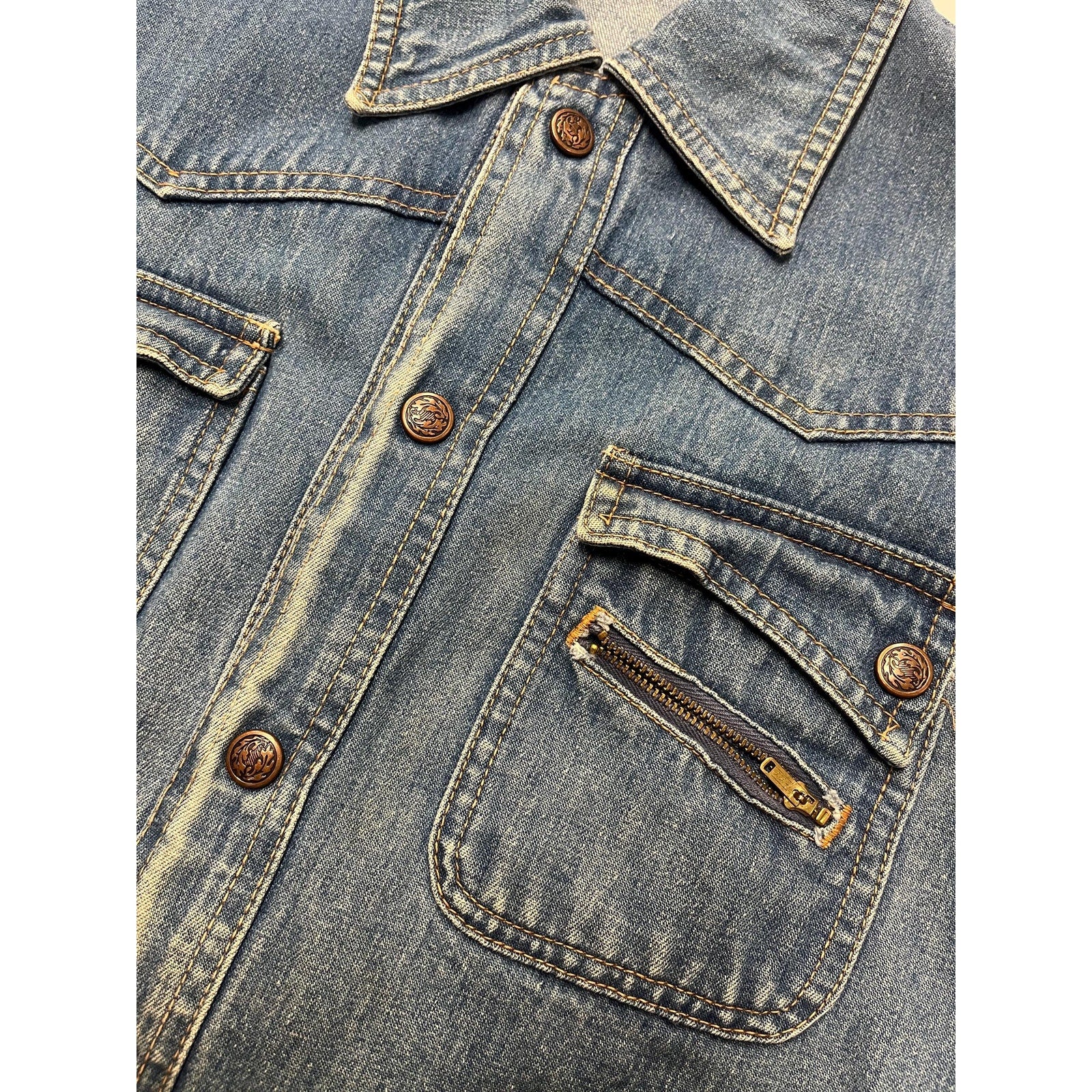 1960s XS Jean Jacket - Vintage Faded Blue Snap Button Faded Denim Coat