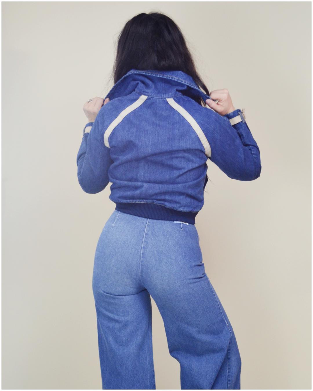 1970s Denim Jacket Vintage FADED GLORY Hippie Denim Coat 70s Zipper Front Jacket