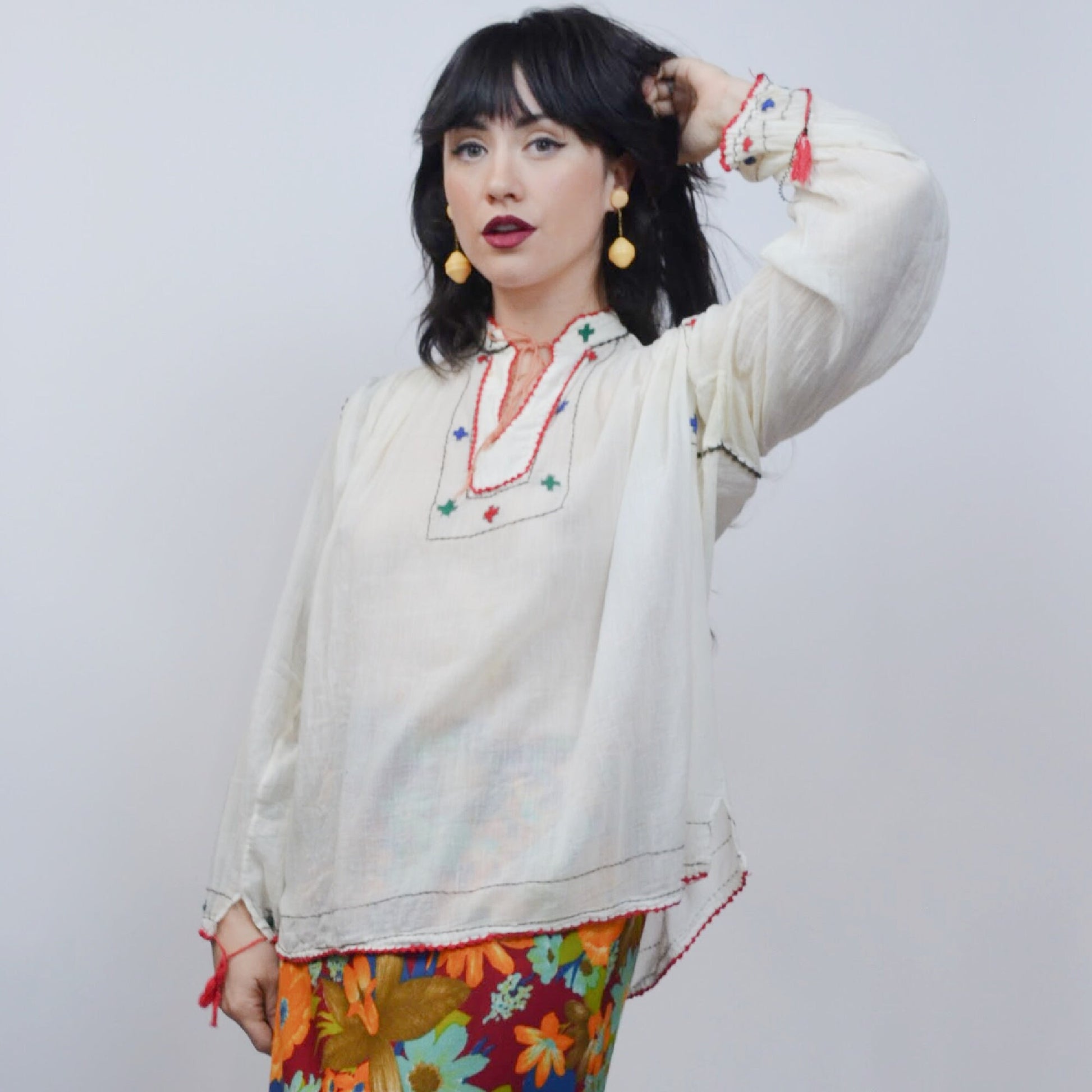 medium 1960s Gauzy Cotton Hippie Blouse 60s