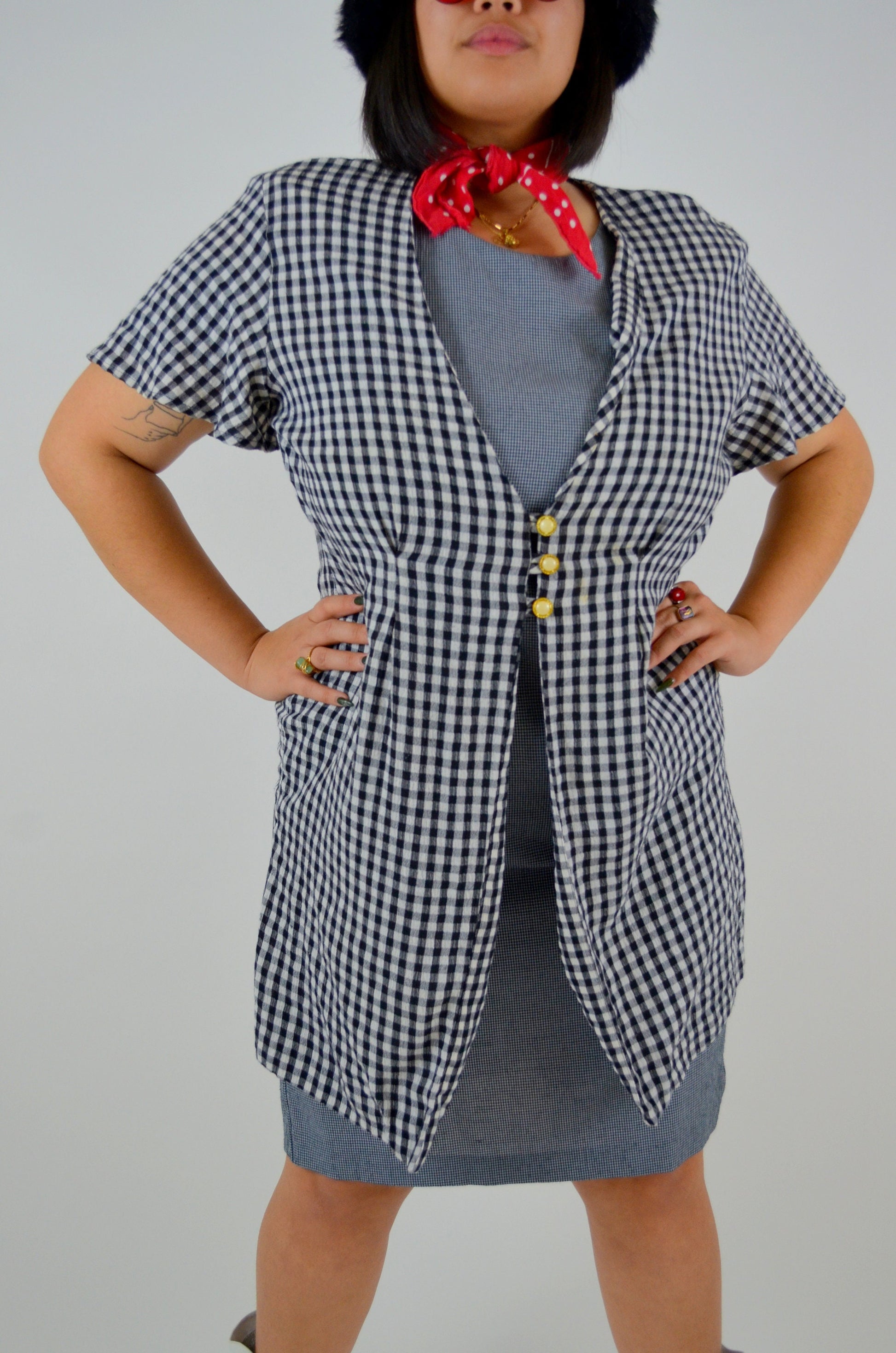 Plaid Mini Dress LARGE Vintage Black and White Checkered Mini 1990s Sundress